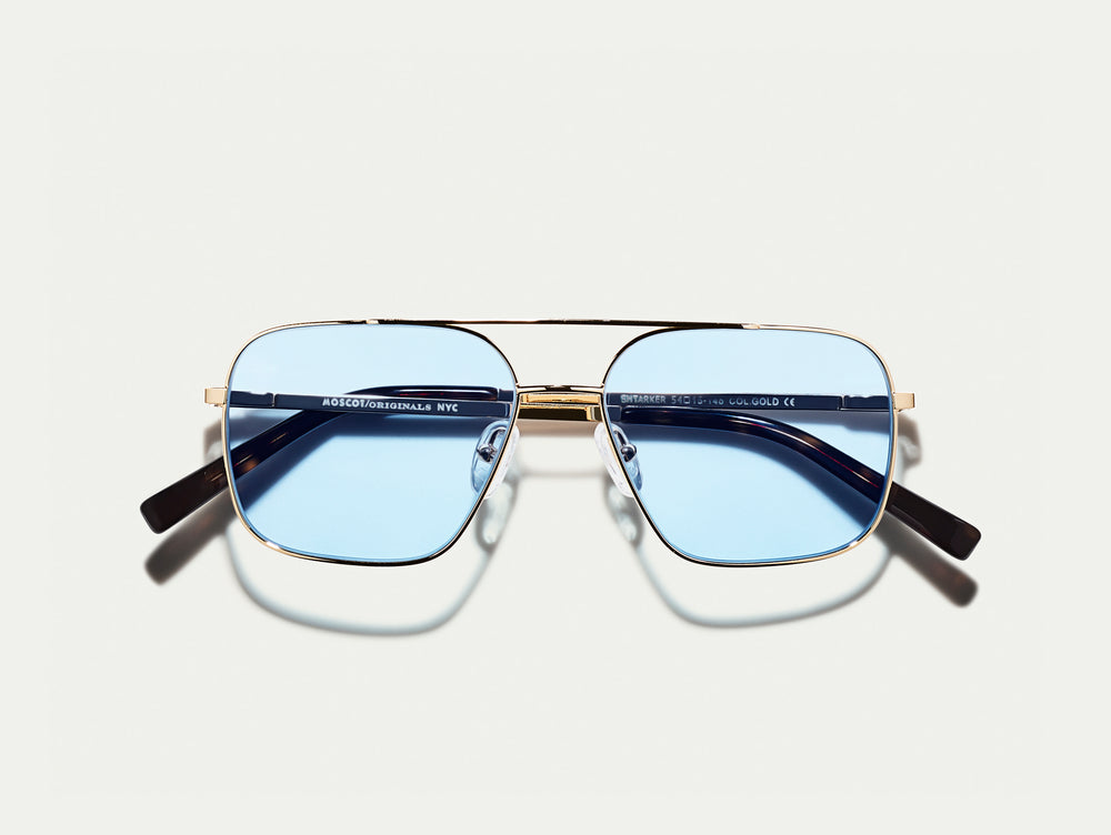 The SHTARKER in Gold with Bel Air Blue Tinted Lenses