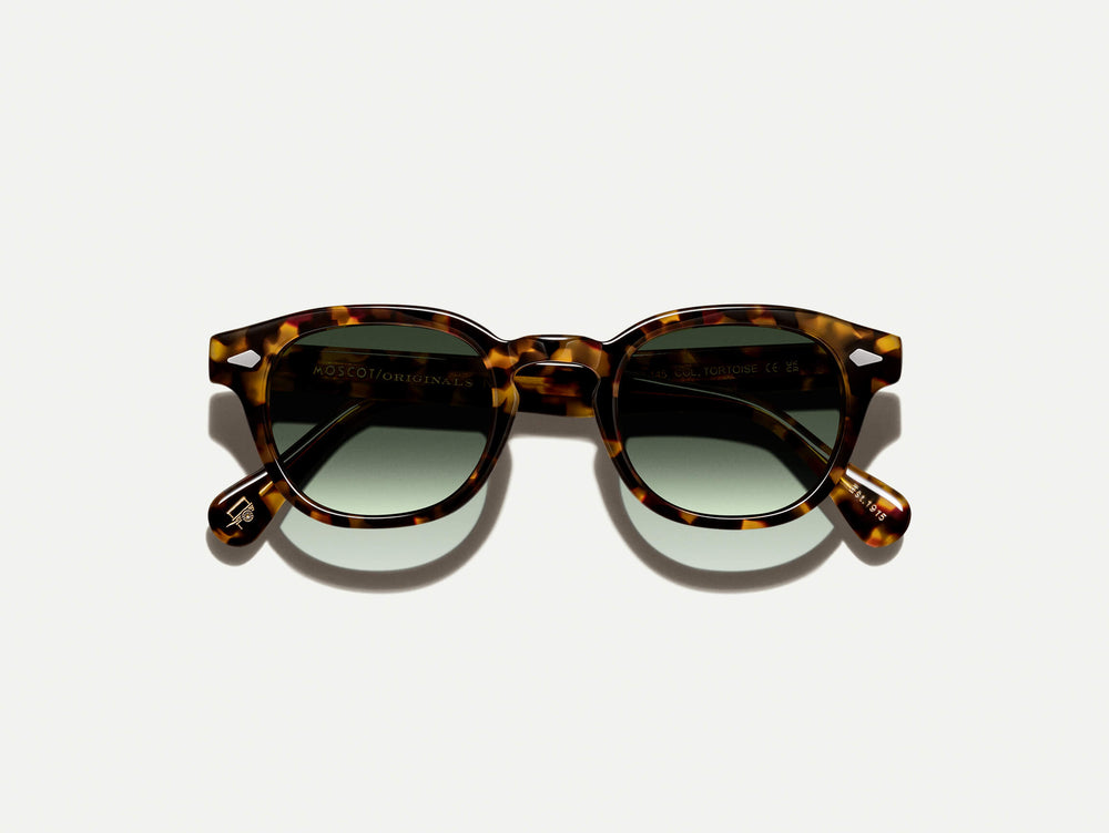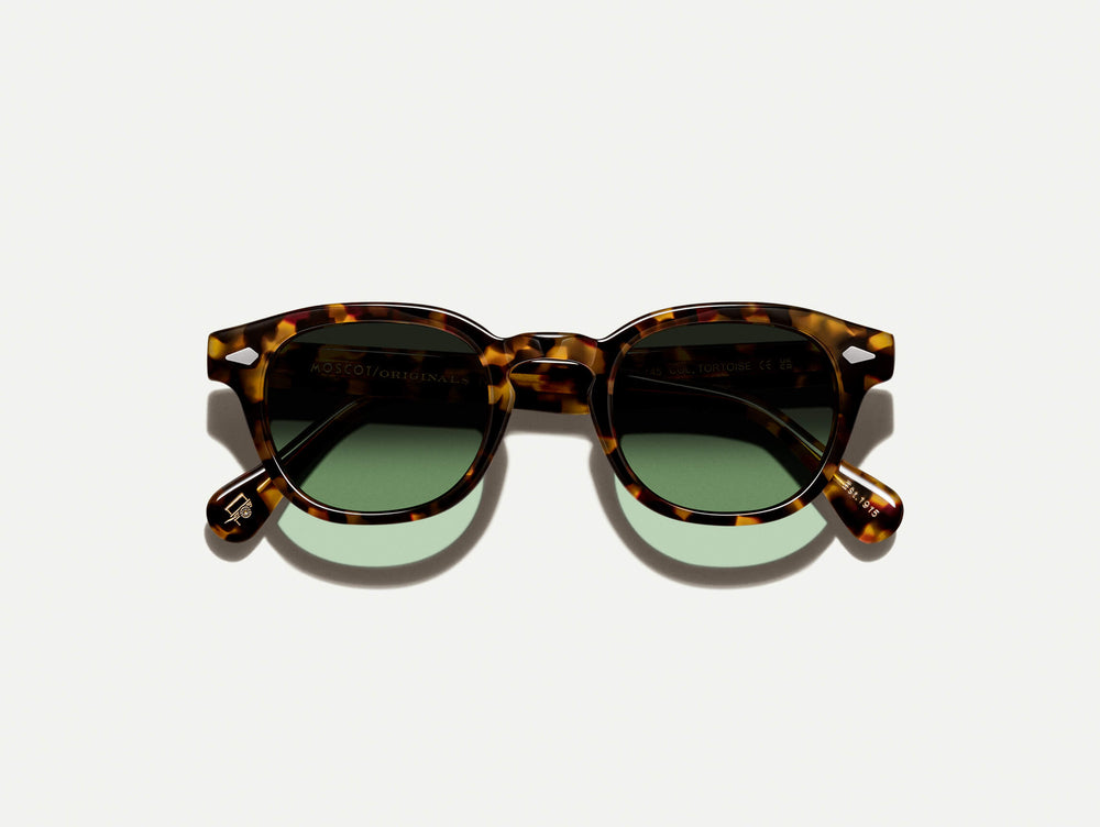 The LEMTOSH Tortoise with Garnet Green Tinted Lenses