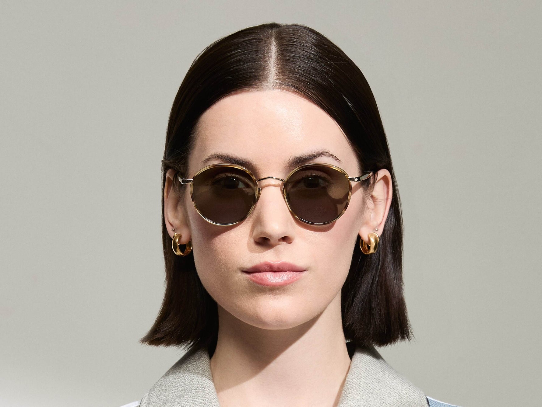 Model is wearing The ZEV SUN in Bamboo in size 49 with G-15 Tinted Lenses