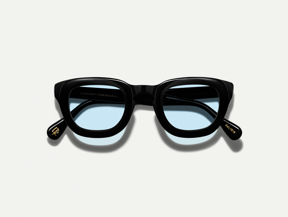 The TELENA in Black with Bel Air Blue Tinted Lenses