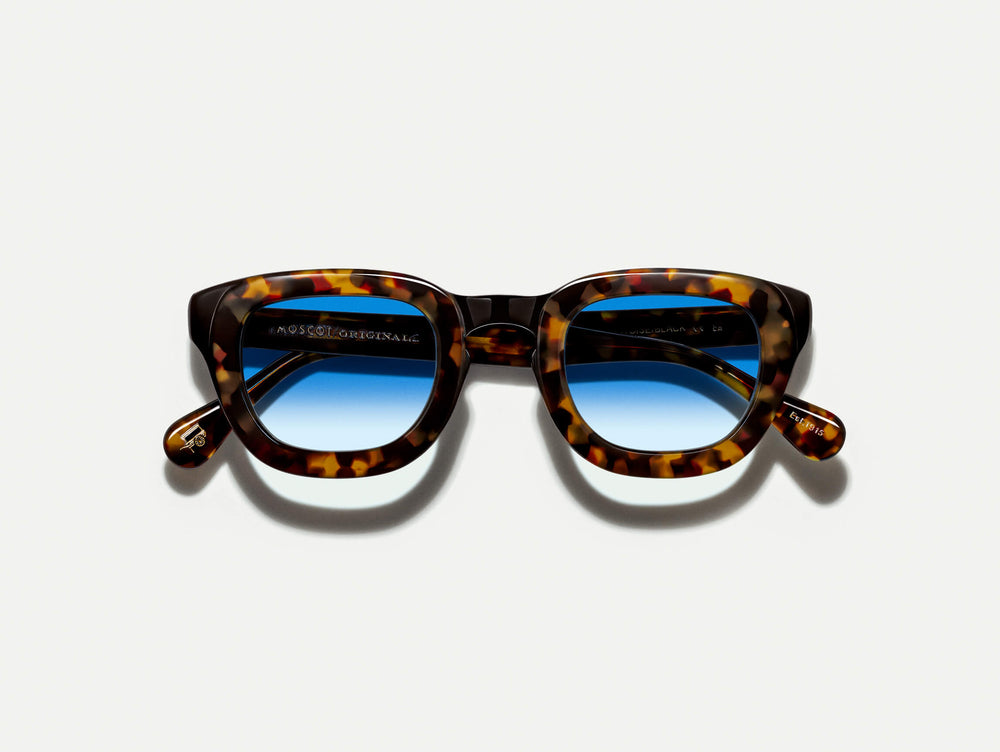 The TELENA in Tortoise/Black with Bel Air Blue Tinted Lenses