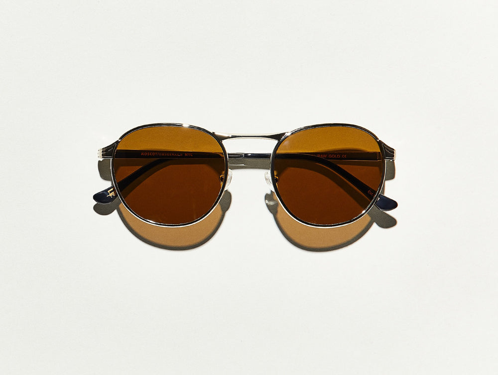 We named this frame The GROYSE because it's big. Big on style, big on character, and just plain big. Big, big, big. With its soft round shape, raw gold color, retro, flat beveled edges, and a bridge that sits high. The GROYSE is 1970s all the way. Can you dig?